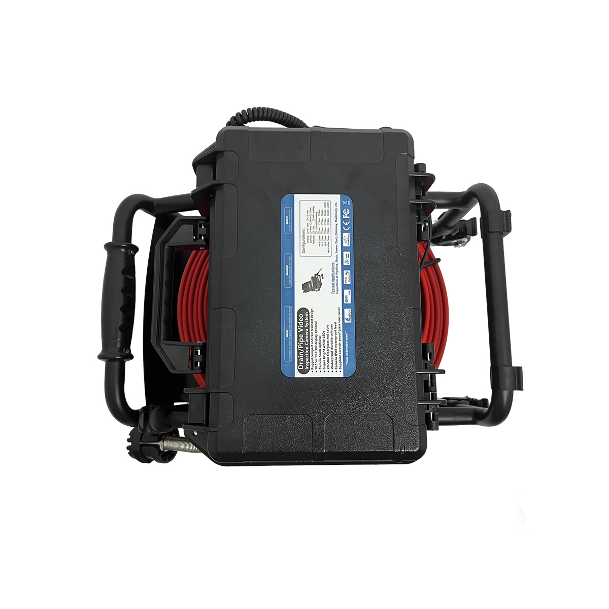This upgraded, versatile pipe inspection camera is designed for sewer pipes, air ducts, underground cables, and more. It features a Φ23 mm CMOS camera head, a 20–50 m fiberglass push rod, and a 10.1" or 13.3" LCD monitor with SD card and U-disk recording.