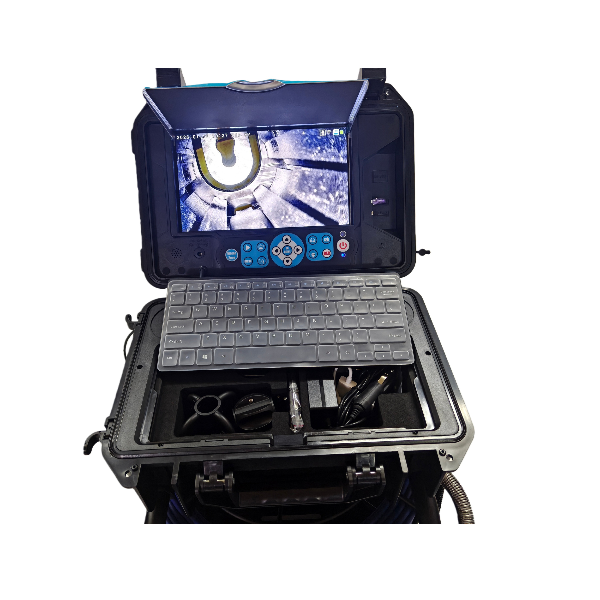 This upgraded, versatile pipe inspection camera is designed for sewer pipes, air ducts, underground cables, and more. It features a Φ23 mm CMOS camera head, a 20–40 m fiberglass push rod, and a 10.1" or 13.3" LCD monitor with SD card and U-disk recording.
